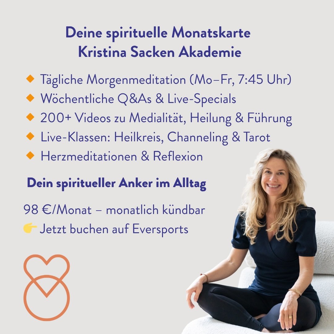 Die spirituelle Monatskarte ist Dein Zugang zu Kristinas täglicher Begleitung und einem lebendigen Feld aus Meditation, medialem Lernen und liebevollem Austausch.